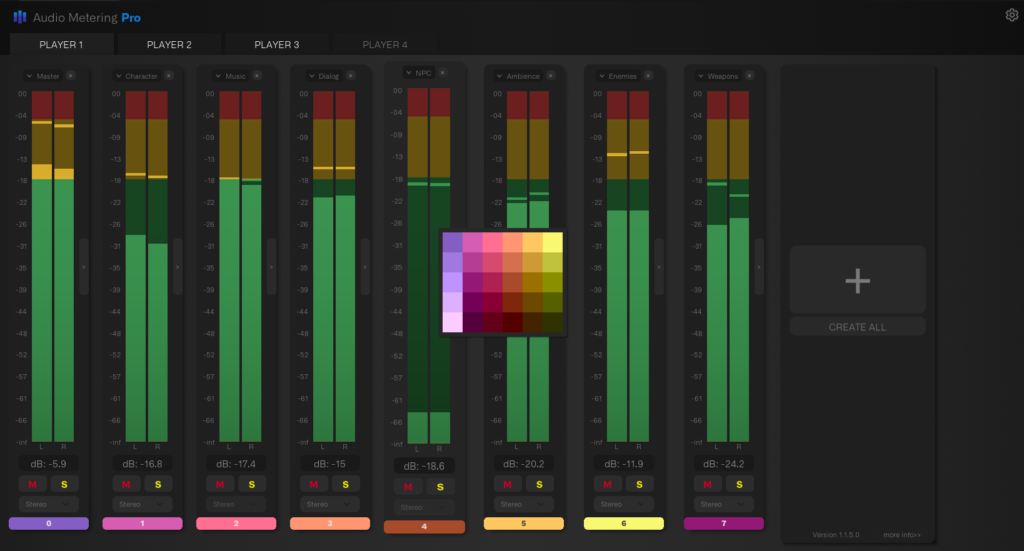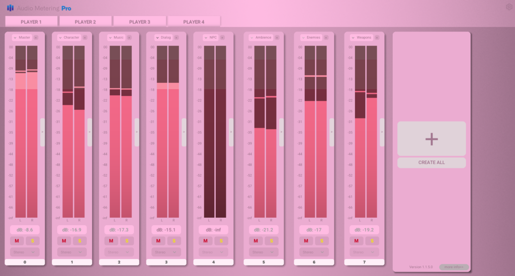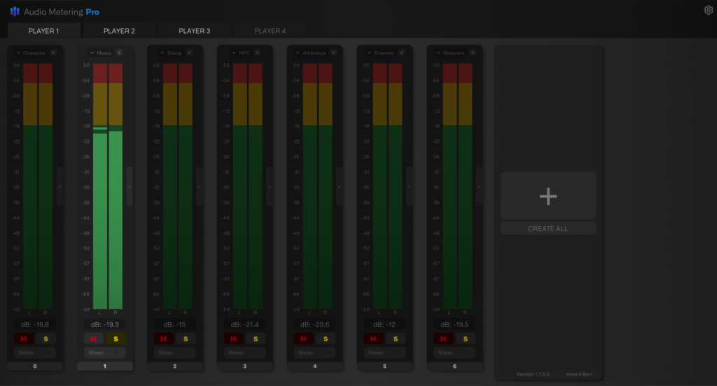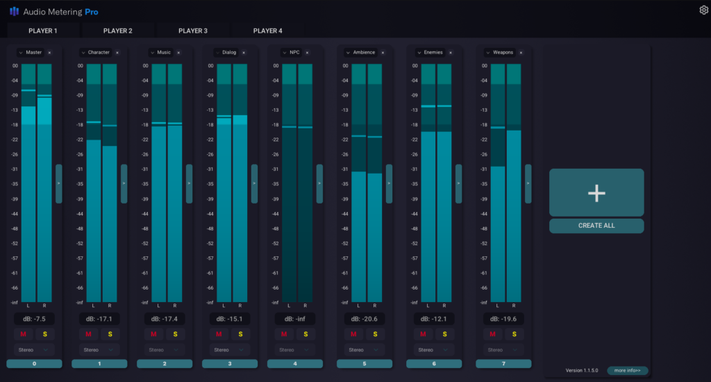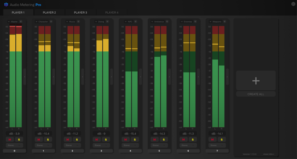 Enjoy synchronized audio analysis across all players, ensuring that everyone shares the same immersive sonic experience, no matter their location. Switch between the Player Tabs to meter the audio for each player